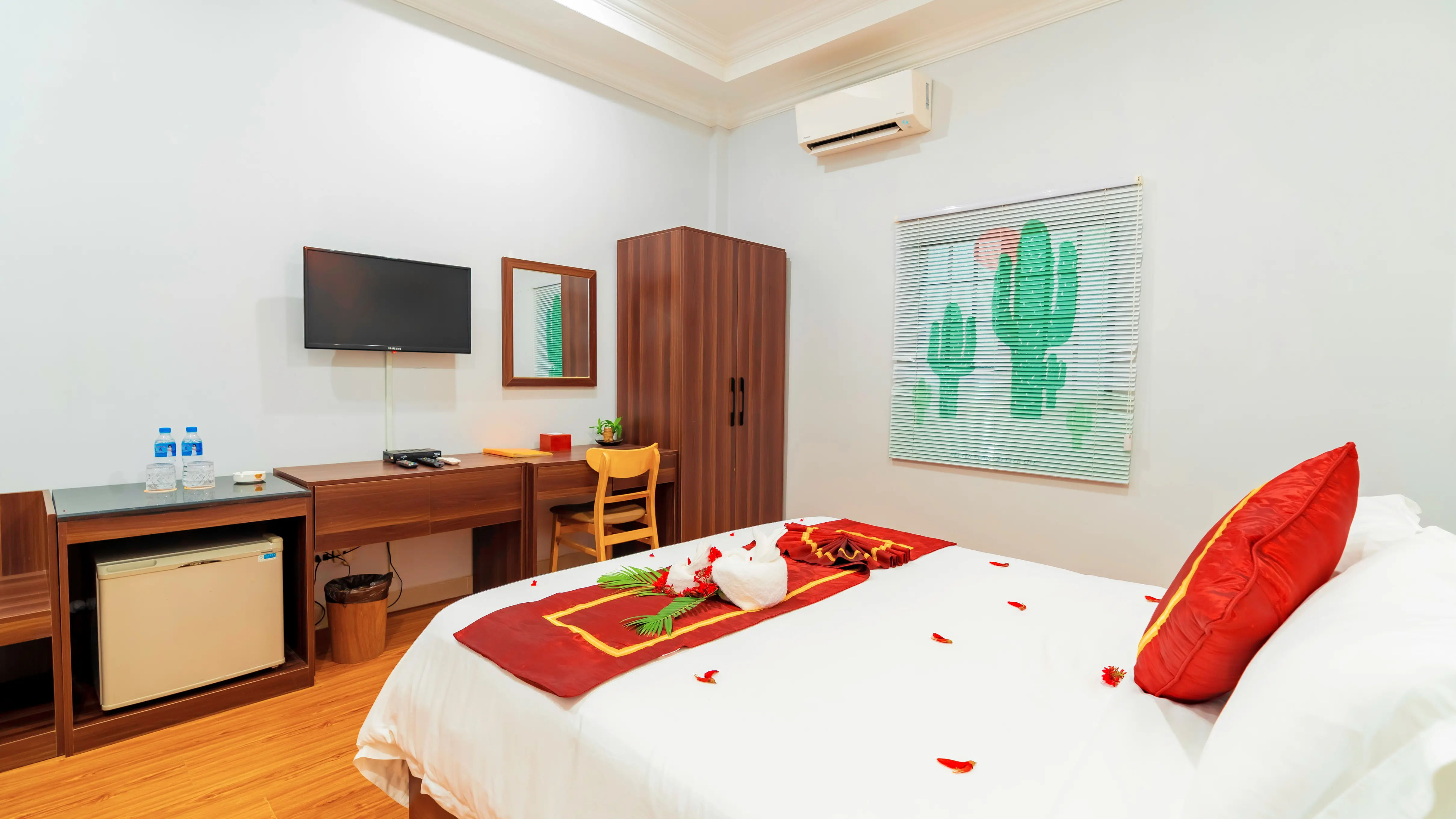 Notre Chambre Standard Twin est conçue pour le partage, offrant deux lits confortables et une atmosphère accueillante pour un séjour reposant. Idéale pour des amis, des collègues ou une famille voyageant ensemble, cette chambre dispose d’équipements modernes, d’une décoration élégante et d’un service attentif pour rendre votre séjour vraiment agréable. Tarifs à partir de 40 $ pour 1 nuit.